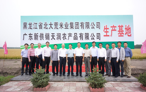 9月12日,由北大荒米業(yè)集團(tuán)與廣州天潤新供銷公司共建的水稻產(chǎn)銷基地在建三江正式揭牌。廣東省供銷合作聯(lián)社黨組書記、理事會主任李朝明,總局副巡視員李殿君出席了揭牌儀式。
