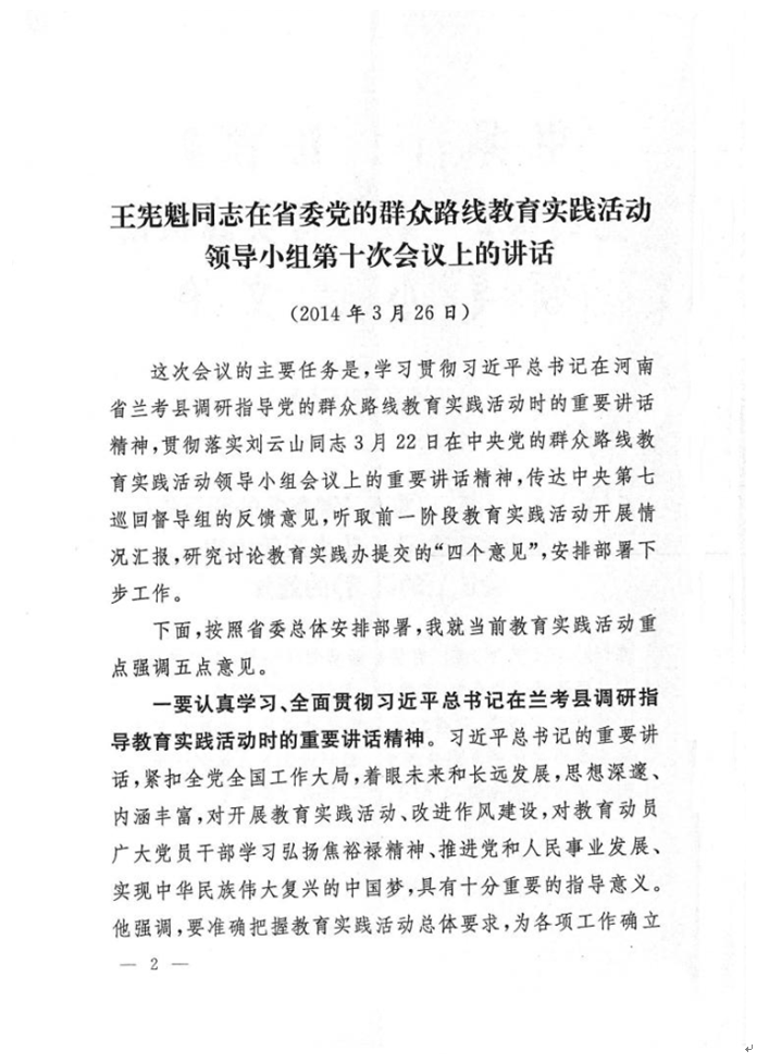 王憲魁同志在省委黨的群眾路線教育實(shí)踐活動(dòng)領(lǐng)導(dǎo)小組第十次會(huì)議上的講話