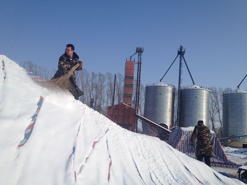 老話說:瑞雪兆豐年,201614日夜晚,一場中雪給本已是銀裝素裹的云山大地又披上了一片新妝。似乎預(yù)示著新的一年又是一個(gè)豐收年。但是這場元旦佳節(jié)過后的第一場雪卻給虎林北大荒米業(yè)公司的干部、員工帶來了不小的麻煩。由于沒有儲(chǔ)糧設(shè)施,烘干后的水稻只能打上圍堆,蓋上苫布堆放在場院中。冬季最害怕的就是積雪融化造成糧食的損失。5日一大早,全體員工以雪為令,在總經(jīng)理周雪松,書記李小合的帶領(lǐng)下,對(duì)圍堆上,廠區(qū)作業(yè)場地的積雪進(jìn)行清掃,沒有鏟車,就用板鍬;沒有農(nóng)用車,就用手堆車,雖然是零下15度的天氣,但是大伙干的熱火朝天,額頭上、身上被汗水浸濕,呼出的哈氣在眉毛和眼毛上凝結(jié)成了冰棱,二個(gè)半小時(shí)的連續(xù)作戰(zhàn),終于把積雪清掃干凈,2016年的收儲(chǔ)工作開了一個(gè)好頭。頭頂藍(lán)天,腳踏瑞雪,虎林北大荒米業(yè)的員工們對(duì)公司的未來充滿希望,對(duì)北大荒米業(yè)的發(fā)展充滿信心!