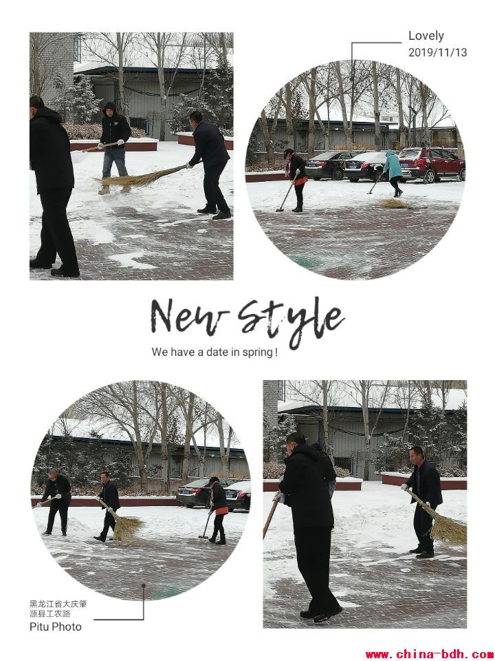 2019年11月12日下午迎來了今年第一場大雪,紛飛的雪花雖然給制米廠增添了一道亮麗的美景,但同時(shí)也給我們的生產(chǎn)、原糧收儲及出行帶來了諸多不便及安全隱患。13日清晨,肇源制米廠在廠長何乃峰的部署迅速落實(shí)“以雪為令,雪停即清”的原則,在孫義書記、徐孟副廠長的帶領(lǐng)下,全體業(yè)務(wù)人員不畏辛苦,不畏嚴(yán)寒,迅速清掃廠區(qū)內(nèi)的積雪。他們親臨一線,沖鋒在前,雖然有的地方的積雪經(jīng)過車輛反復(fù)碾壓已成堅(jiān)硬的冰塊,很難清理,但大家懷著一顆熾熱的心,干勁十足,攻堅(jiān)克難。