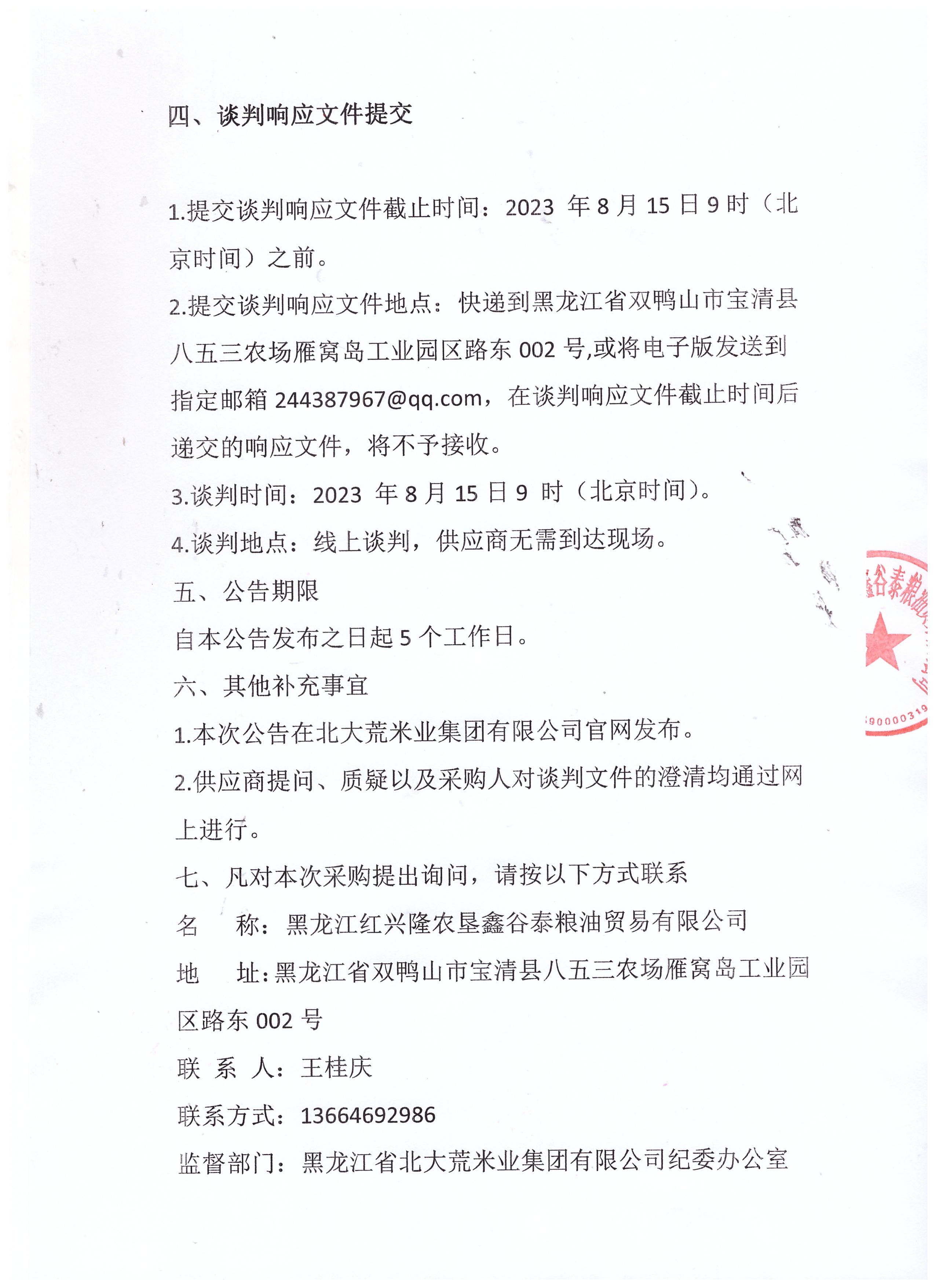 黑龍江紅興隆農(nóng)墾鑫谷泰糧油貿(mào)易有限公司消防泵房改造項目招標公告