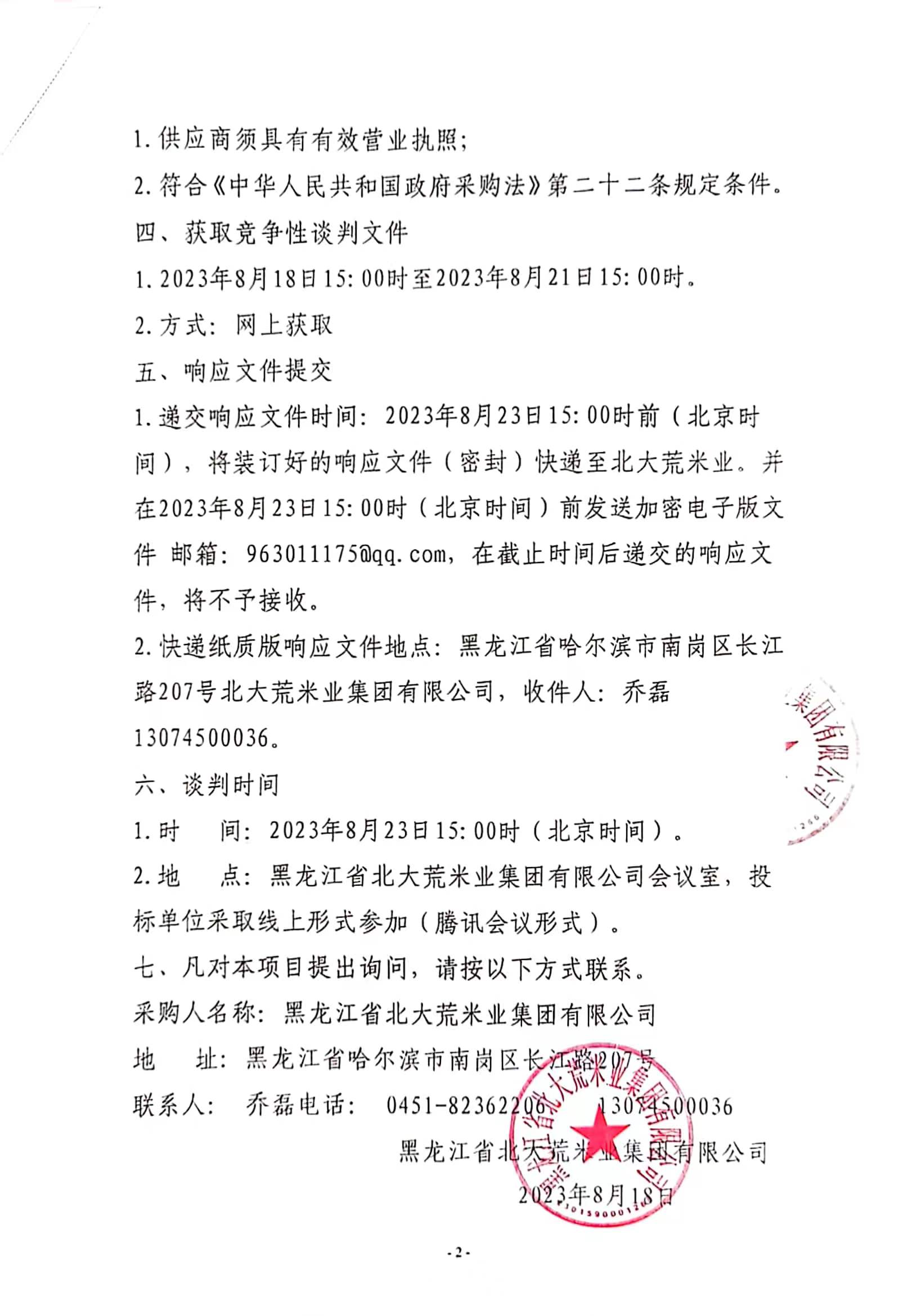黑龍江省北大荒米業(yè)集團(tuán)有限公司辦公樓設(shè)施改造項(xiàng)目競(jìng)爭(zhēng)性談判公告