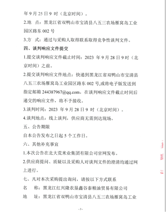 黑龍江紅興隆農(nóng)墾鑫谷泰糧油貿(mào)易有限公司烘干塔維修改造項(xiàng)目競(jìng)爭(zhēng)性談判公告