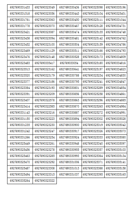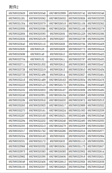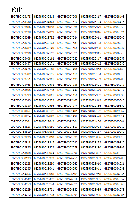 因公司發(fā)展需要,部分產(chǎn)品包裝已經(jīng)退出市場(chǎng),不再進(jìn)行銷售。附件1中條碼,公司已于2023年7月前停用,相對(duì)應(yīng)產(chǎn)品包裝同時(shí)退出市場(chǎng);附件2中條碼,公司已于2024年4月前停用,相對(duì)應(yīng)產(chǎn)品包裝同時(shí)退出市場(chǎng),F(xiàn)對(duì)公司停用條碼進(jìn)行公示,如在市場(chǎng)上發(fā)現(xiàn)以下產(chǎn)品條碼及包裝,則可視為假冒產(chǎn)品處理,黑龍江省北大荒米業(yè)集團(tuán)有限公司將追究相應(yīng)的責(zé)任。