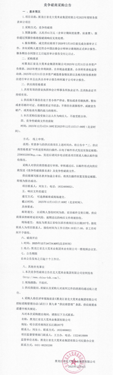 米業(yè)集團(tuán)2025年度財務(wù)報告審計項目爭磋商采購公告