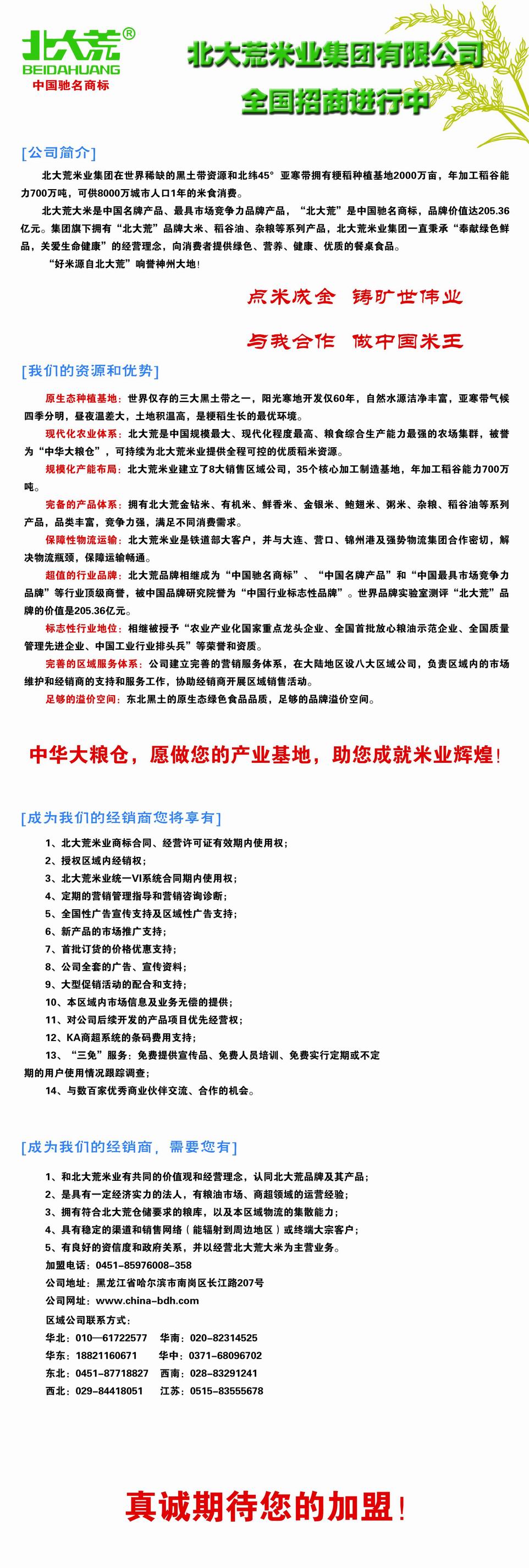 黑龍江省北大荒米業(yè)集團有限公司全國招商